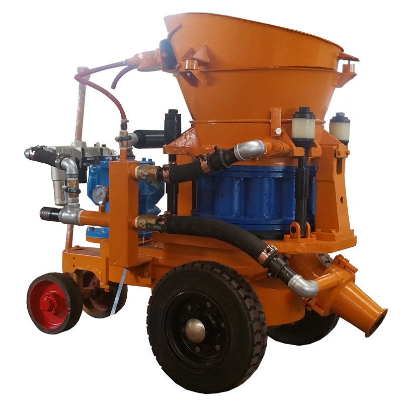 KPZ系列气动式混凝土喷射机是利用压缩空气,将按一定配比的混凝土拌和料通过管道输送并高速喷射到受喷面上凝结硬化,从而形成混凝土支护层。近年来,喷射混凝土 技术以其简单的工艺、独特的效应、经济的造价和快捷的施工速度,在建筑、铁公路隧道施工、矿山井巷建设、边坡加固等领域广泛应用。