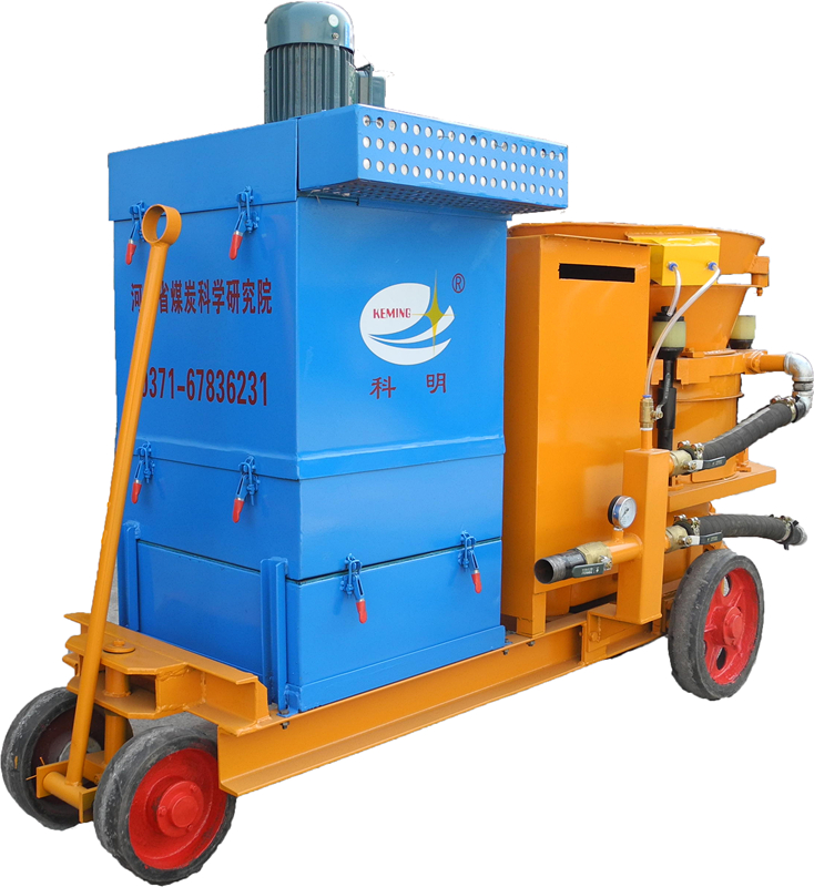 KCPZ(工程)除尘式混凝土喷射机是最新型环保混凝土喷射机具,采用新型除尘工艺及滤材,过滤效果好,较传统喷射机降尘90%以上,拥有2项发明及实用新型专利。机器本体及喷头突破传统局限,多层环状加水喷头系统,保证混合均匀,回弹大大降低。实现速凝剂自动、均匀添加,减少作业人员、减少环境污染、充分保障施工人员身心健康。具有机旁粉尘小、设备结构紧凑、性能可靠、操作简单、使用寿命长、维护和清理方便等特点,是工程支护中喷射混凝土作业的理想选择。可按要求定制胶轮或轨轮。