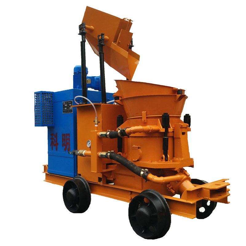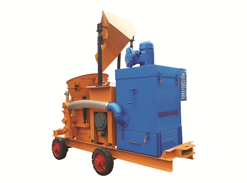 PS6I-J(矿用)除尘式混凝土湿式喷射机是最新型环保混凝土喷射机具,采用新型除尘工艺及滤材,过滤效果好,较传统喷射机降尘90%以上,拥有2项发明及实用新型专利。机器本体及喷头突破传统局限,多层环状加水喷头系统,保证混合均匀,回弹大大降低。实现速凝剂自动、均匀添加,减少作业人员、减少环境污染、充分保障施工人员身心健康。具有机旁粉尘小、设备结构紧凑、性能可靠、操作简单、使用寿命长、维护和清理方便等特点,能够在煤矿井下狭小空间内进行正常的支护作业,是煤矿井下进行喷射混凝土作业的理想选择。可按要求定制胶轮或轨轮。